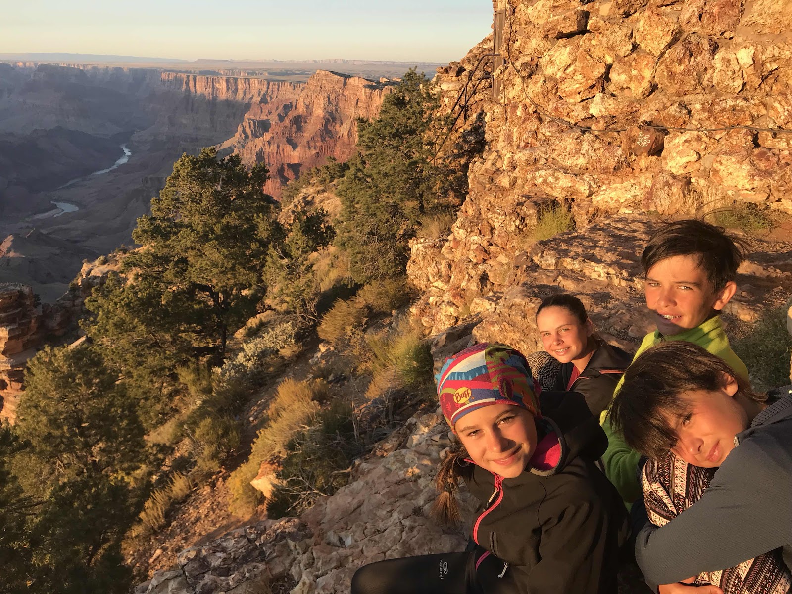 Repos & temps libre pour tous puis nous allons admirer le coucher de soleil sur le Grand Canyon. C’est géant et magnifique. Nous yeux sont saisis par l’immensité des paysages. Il y a encore pas mal de touristes mais il y a de la place pour tout le monde !